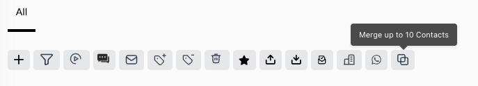 To merge contacts, go to your Contact list, search for the name and select the checkbox next to each of the duplicate contacts that you want to merge. Then, select the [Merge] icon on the top of the contact screen (as shown below). Follow the prompts to choose which settings you want to carry over to the new master profile.