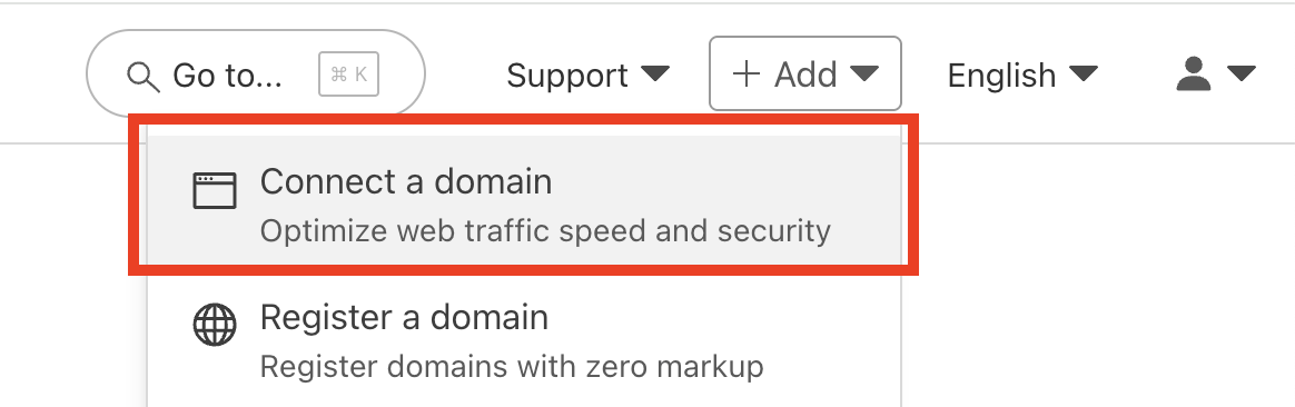Once logged in, click [+ Add] > and select [Connect a domain]