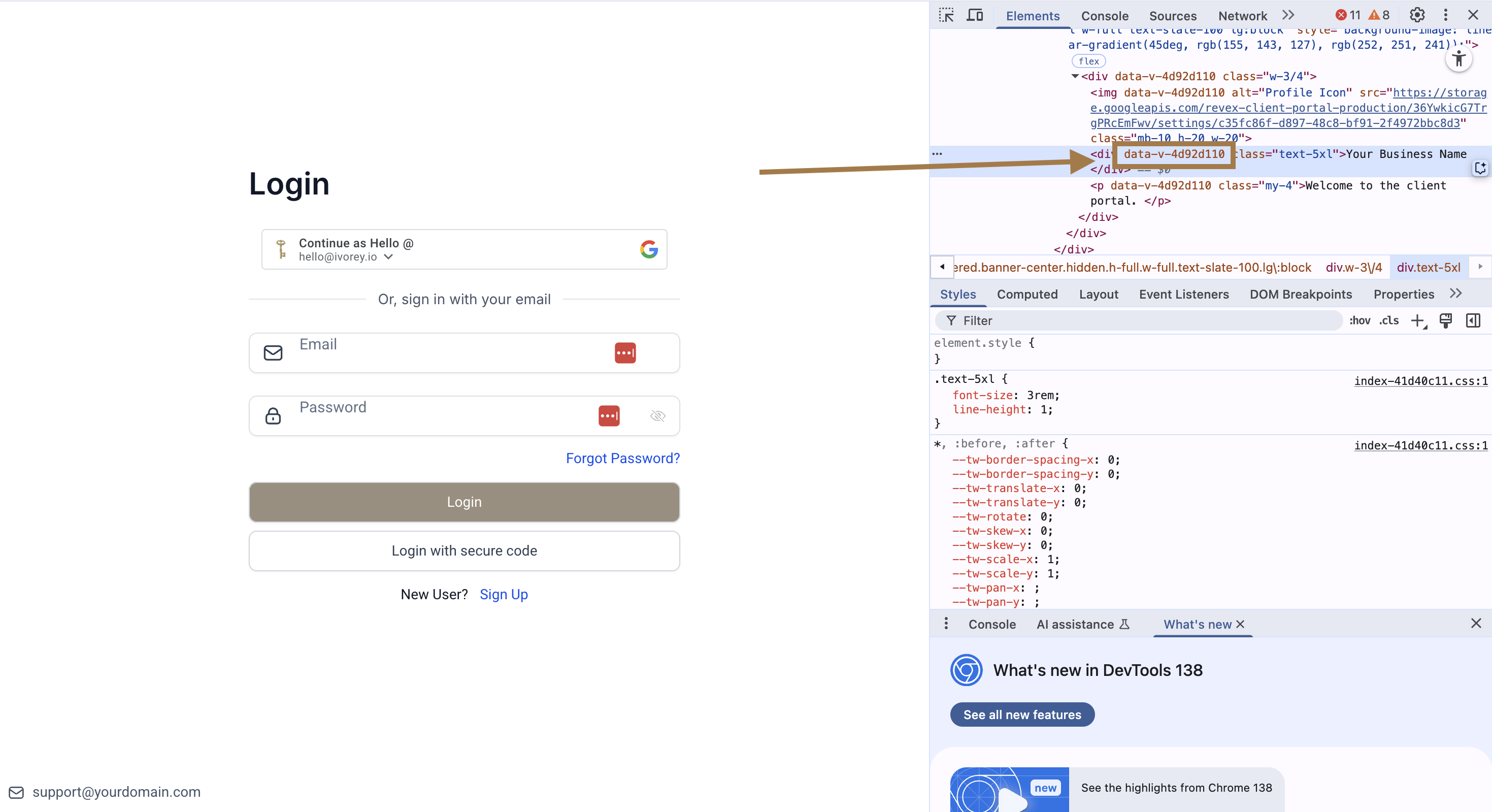 Replace the bold value data-v-xxxxx with your unique attribute that you copied from your client portal page > then click [Save]