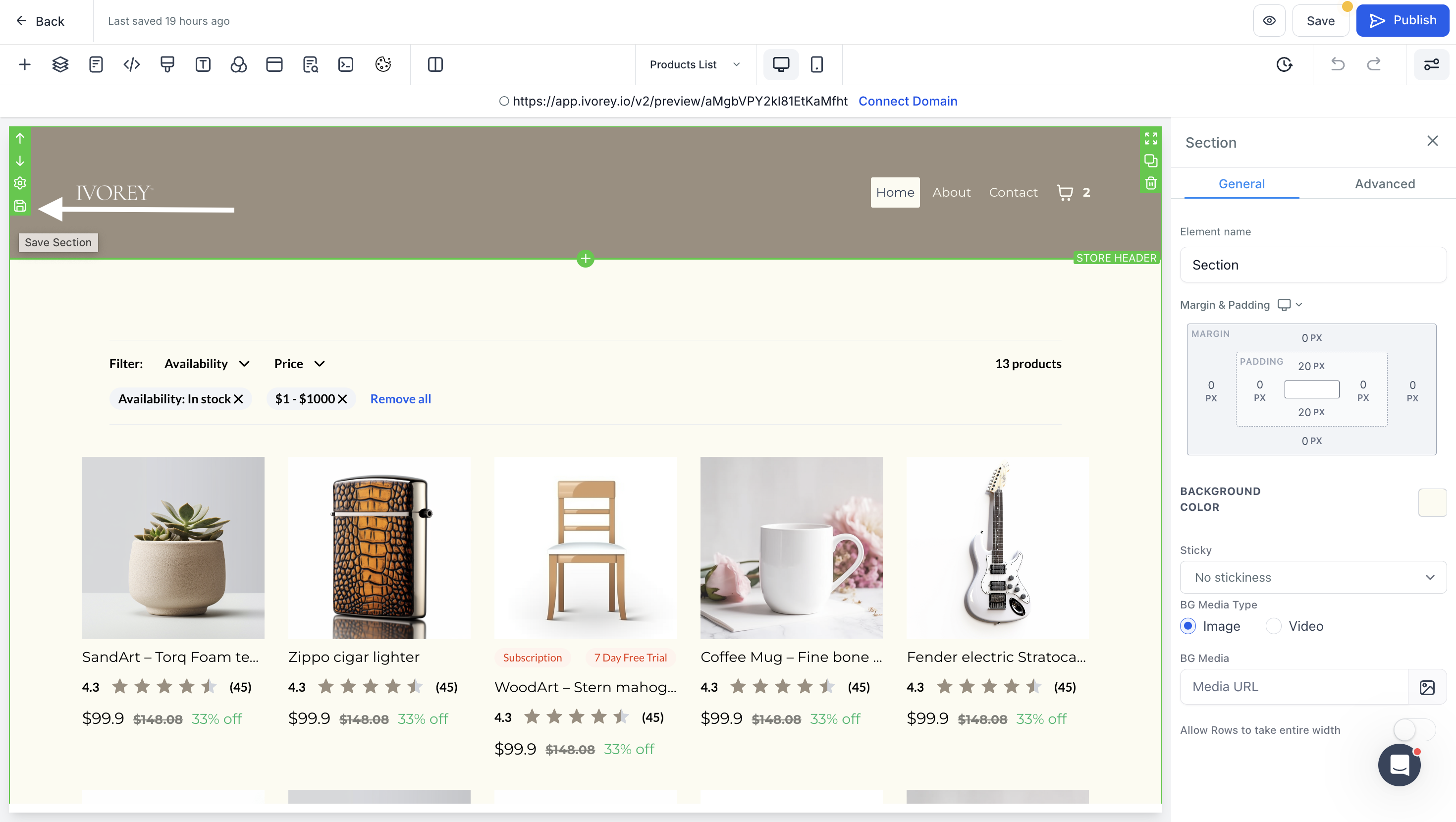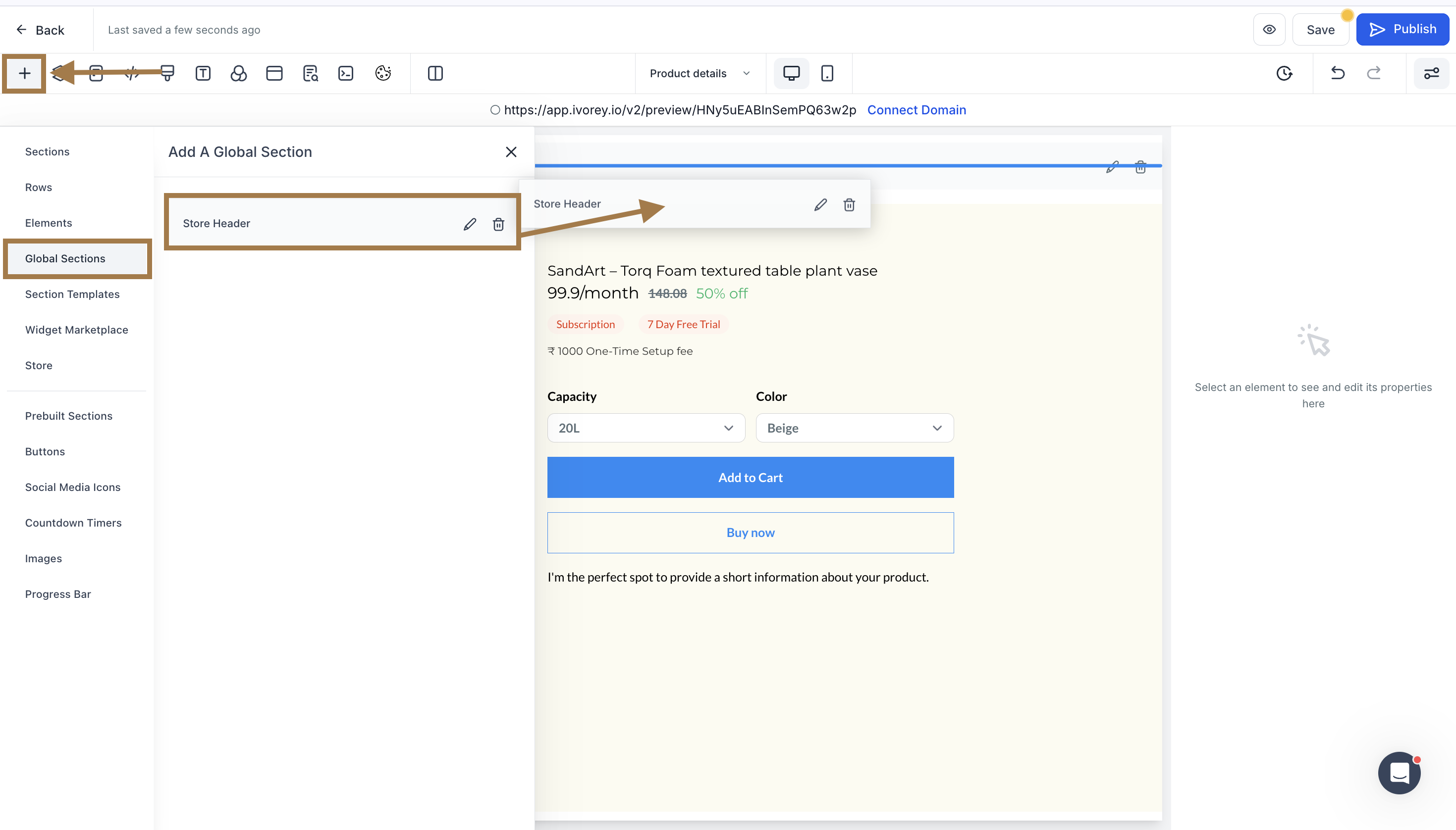 Save time with global sections and elements for headers, footers, and recurring design elements across all store pages