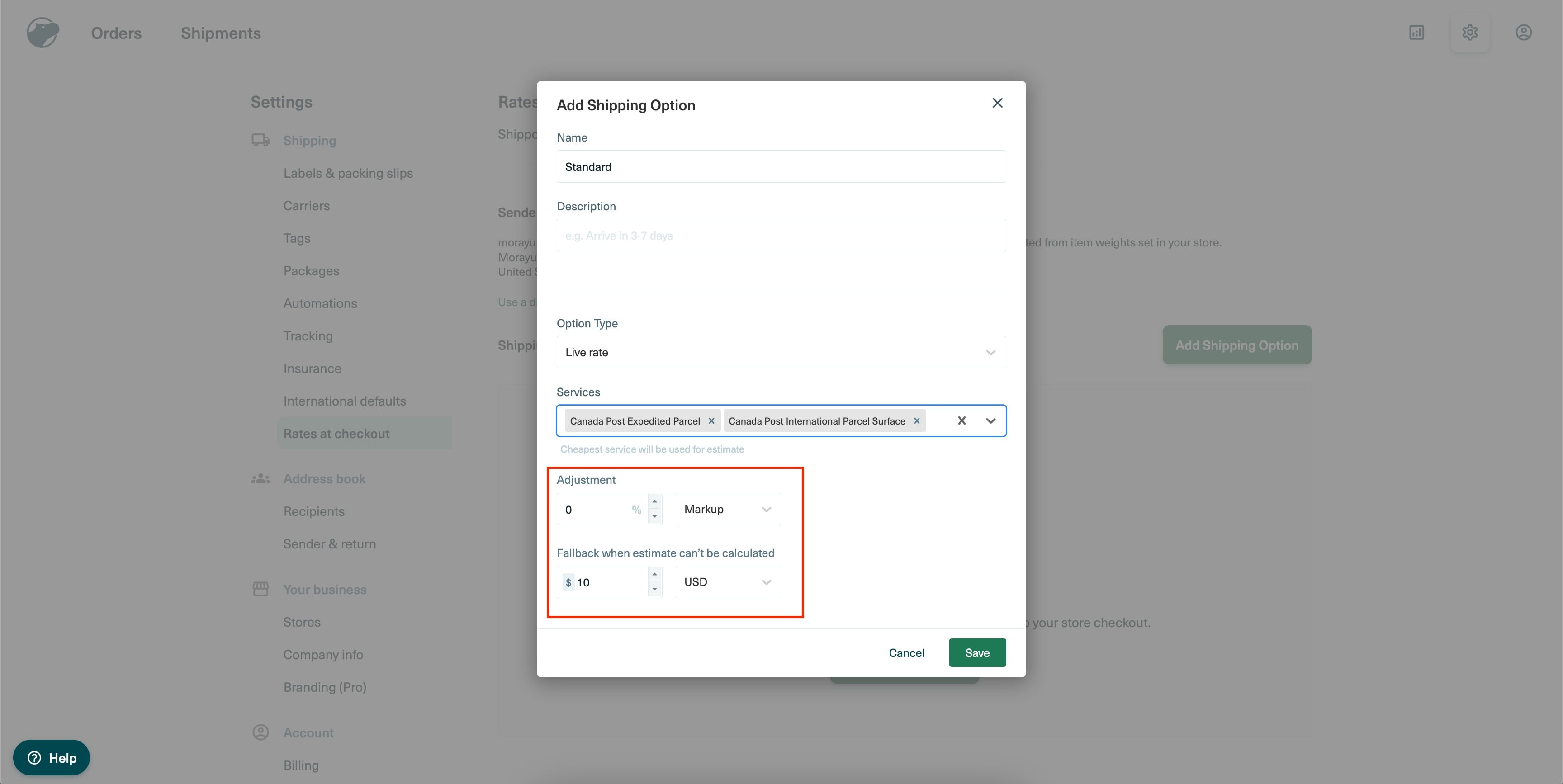 Note: You can earn by charging markup fees on delivery. This will be added on top of live rate charges. You can either choose a percentage based or fixed markup.