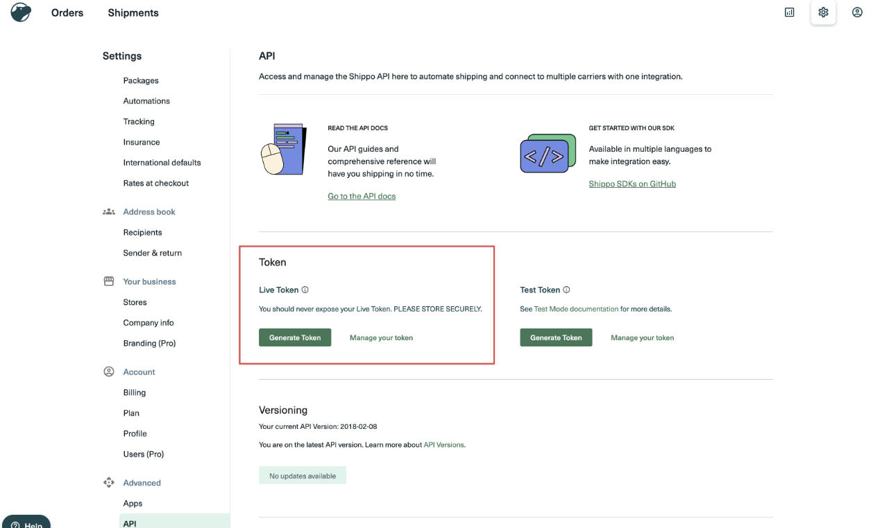 Follow the below steps to generate the live token in Shippo:
