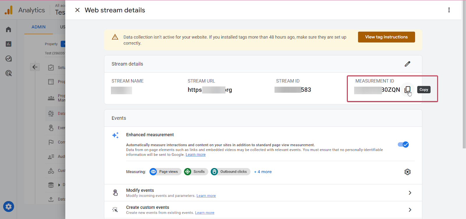 Select the appropriate data stream > copy your Measurement ID and paste it in a note or doc (you’ll use this later in your Ivorey